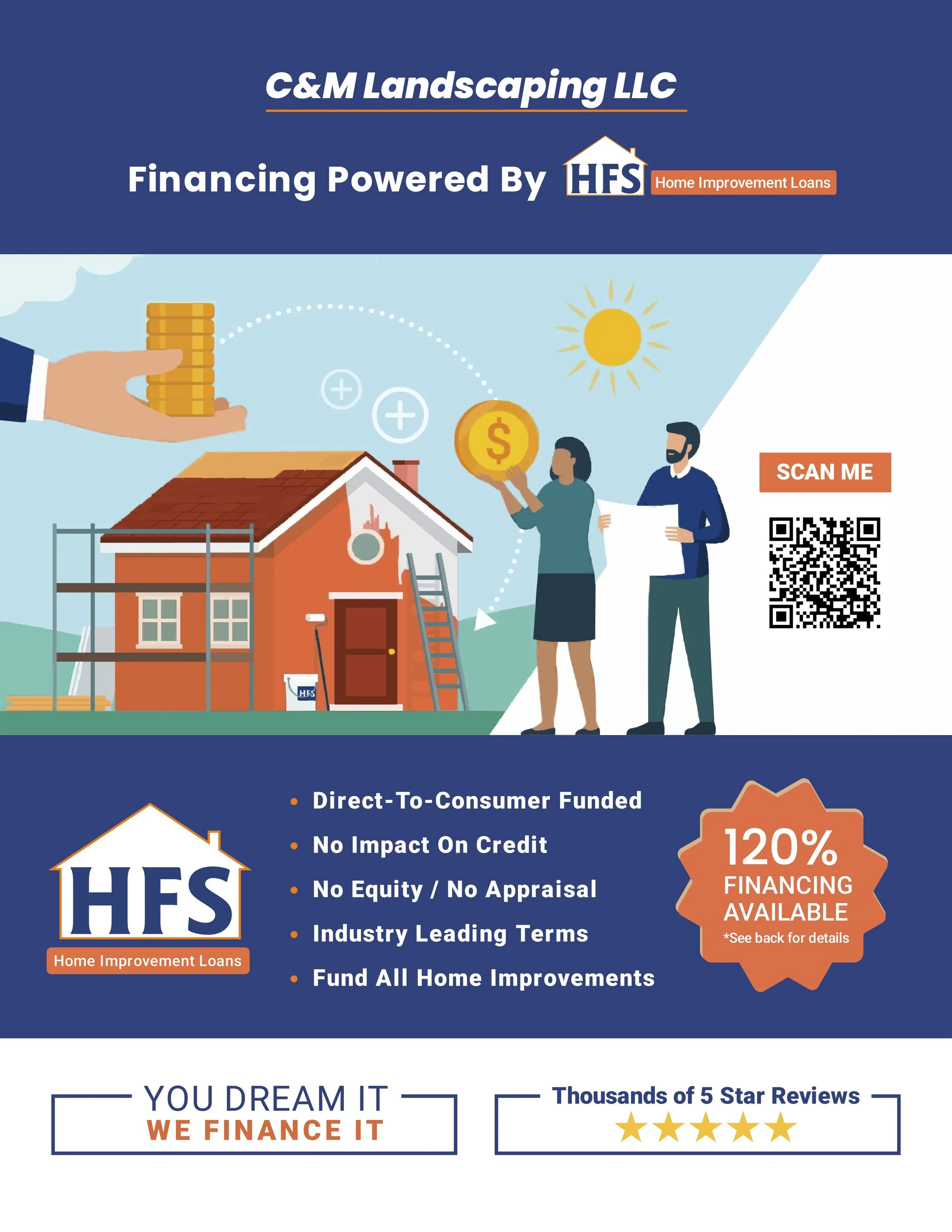 To make our excellent services even more accessible, C&M offers financing through HFS Home Improvement Loans.HFS provides convenient, contractor-integrated financing options with competitive rates, flexible monthly payments, and same-day approvals. This allows customers to upgrade their properties immediately—without the stress of paying out of pocket upfront .